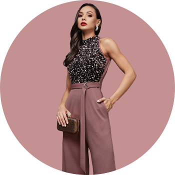 Crease Ease Cocktail Women's Mauve Sleeveless Sequined Halter Neck Party Jumpsuit